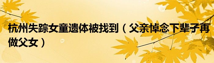 大家好,綜合小編來為大家講解下。杭州失蹤女童遺體被找到,父親悼念下輩子再做父女很多人還不知道,現在讓我們一起來看看吧!