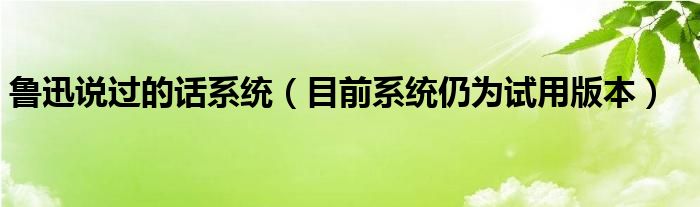 大家好,綜合小編來為大家講解下。魯迅說過的話系統(tǒng),目前系統(tǒng)仍為試用版本很多人還不知道,現(xiàn)在讓我們一起來看看吧!