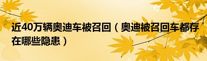 大家好,綜合小編來為大家講解下。近40萬輛奧迪車被召回,奧迪被召回車都存在哪些隱患很多人還不知道,現(xiàn)在讓我們一起來看看吧!