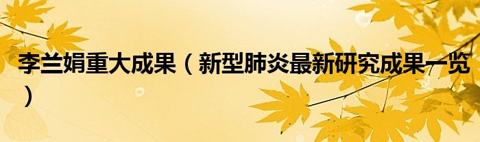 大家好,綜合小編來為大家講解下。李蘭娟重大成果,新型肺炎最新研究成果一覽很多人還不知道,現在讓我們一起來看看吧!