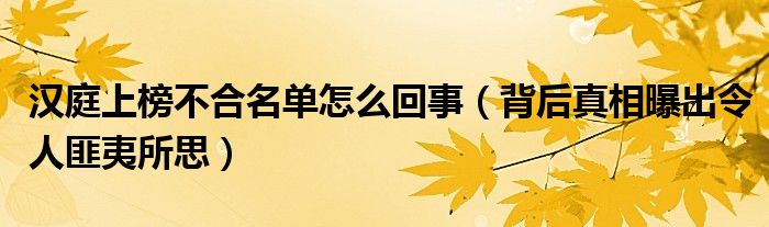 大家好,綜合小編來為大家講解下。漢庭上榜不合名單怎么回事,背后真相曝出令人匪夷所思很多人還不知道,現在讓我們一起來看看吧!
