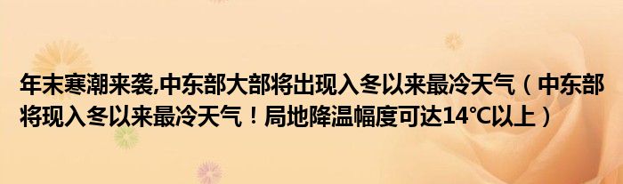 大家好,綜合小編來為大家講解下。年末寒潮來襲,中東部大部將出現入冬以來最冷天氣,中東部將現入冬以來最冷天氣!局地降溫幅度可達14℃以上很多人還不知道,現在讓我們一起來看看吧!