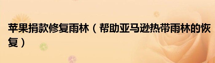 大家好,綜合小編來為大家講解下。蘋果捐款修復雨林,幫助亞馬遜熱帶雨林的恢復很多人還不知道,現在讓我們一起來看看吧!