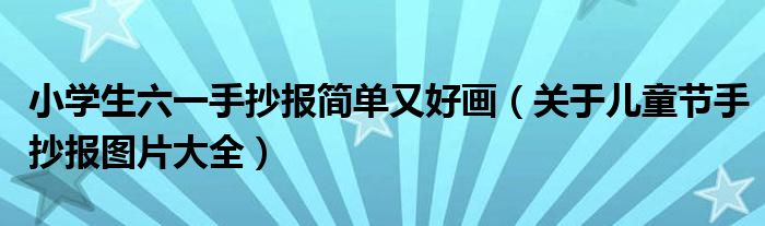 大家好,綜合小編來為大家講解下。小學生六一手抄報簡單又好畫,關于兒童節手抄報圖片大全很多人還不知道,現在讓我們一起來看看吧!