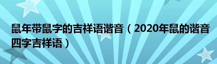 大家好,綜合小編來為大家講解下。鼠年帶鼠字的吉祥語諧音,2020年鼠的諧音四字吉祥語很多人還不知道,現在讓我們一起來看看吧!