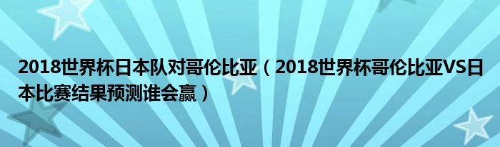 哥倫比亞隊(duì)VS日本隊(duì)歷史戰(zhàn)績
