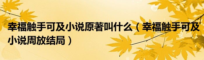 大家好,綜合小編來為大家講解下。幸福觸手可及小說原著叫什么,幸福觸手可及小說周放結局很多人還不知道,現在讓我們一起來看看吧!
