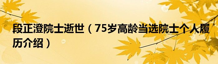 大家好,綜合小編來為大家講解下。段正澄院士逝世,75歲高齡當選院士個人履歷介紹很多人還不知道,現在讓我們一起來看看吧!