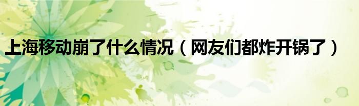 大家好,綜合小編來(lái)為大家講解下。上海移動(dòng)崩了什么情況,網(wǎng)友們都炸開(kāi)鍋了很多人還不知道,現(xiàn)在讓我們一起來(lái)看看吧!