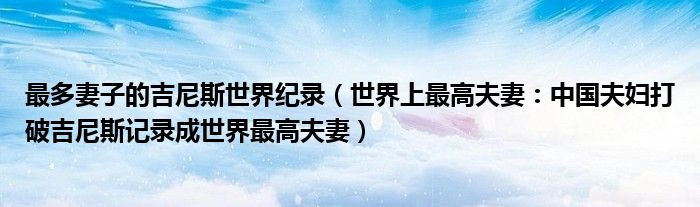 大家好,綜合小編來為大家講解下。最多妻子的吉尼斯世界紀錄,世界上最高夫妻:中國夫婦打破吉尼斯記錄成世界最高夫妻很多人還不知道,現在讓我們一起來看看吧!