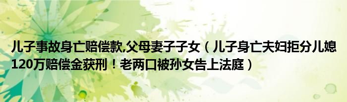 大家好,綜合小編來為大家講解下。兒子事故身亡賠償款,父母妻子子女,兒子身亡夫婦拒分兒媳120萬賠償金獲刑!老兩口被孫女告上法庭很多人還不知道,現在讓我們一起來看看吧!
