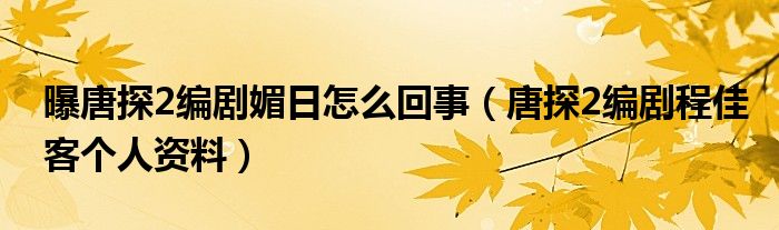 大家好,綜合小編來為大家講解下。曝唐探2編劇媚日怎么回事,唐探2編劇程佳客個人資料很多人還不知道,現(xiàn)在讓我們一起來看看吧!
