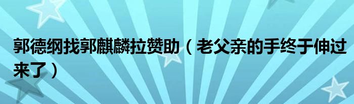 郭德綱找郭麒麟拉贊助老父親的手終于伸過來了