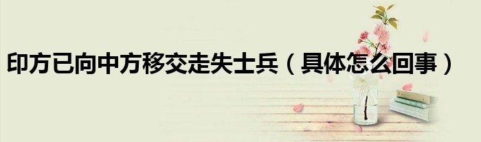 大家好,綜合小編來為大家講解下。印方已向中方移交走失士兵,具體怎么回事很多人還不知道,現在讓我們一起來看看吧!