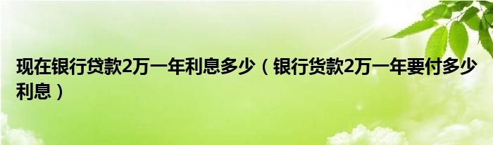 大家好,綜合小編來為大家講解下。現(xiàn)在銀行貸款2萬一年利息多少,銀行貨款2萬一年要付多少利息很多人還不知道,現(xiàn)在讓我們一起來看看吧!