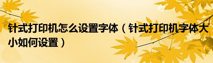 大家好,綜合小編來為大家講解下。針式打印機(jī)怎么設(shè)置字體,針式打印機(jī)字體大小如何設(shè)置很多人還不知道,現(xiàn)在讓我們一起來看看吧!