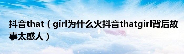 大家好,綜合小編來為大家講解下。抖音that,girl為什么火抖音thatgirl背后故事太感人很多人還不知道,現在讓我們一起來看看吧!