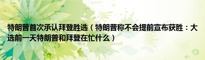 大家好,綜合小編來為大家講解下。特朗普首次承認拜登勝選,特朗普稱不會提前宣布獲勝:大選前一天特朗普和拜登在忙什么很多人還不知道,現在讓我們一起來看看吧!