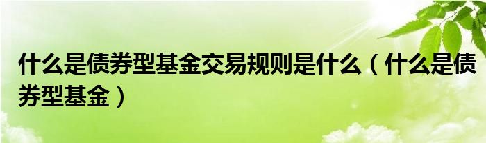 大家好,綜合小編來為大家講解下。什么是債券型基金交易規(guī)則是什么,什么是債券型基金很多人還不知道,現(xiàn)在讓我們一起來看看吧!