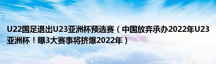 大家好,綜合小編來為大家講解下。U22國足退出U23亞洲杯預選賽,中國放棄承辦2022年U23亞洲杯!曝3大賽事將擠爆2022年很多人還不知道,現在讓我們一起來看看吧!