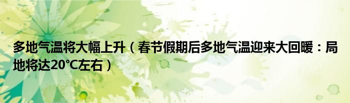 大家好,綜合小編來為大家講解下。多地氣溫將大幅上升,春節假期后多地氣溫迎來大回暖:局地將達20℃左右很多人還不知道,現在讓我們一起來看看吧!