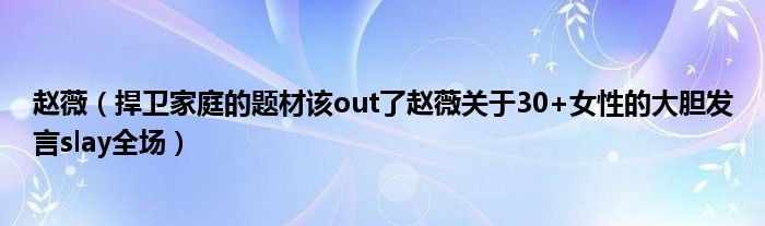 大家好,綜合小編來為大家講解下。趙薇,捍衛家庭的題材該out了趙薇關于30+女性的大膽發言slay全場很多人還不知道,現在讓我們一起來看看吧!