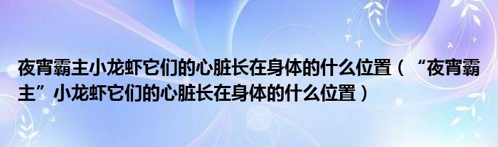 大家好,綜合小編來為大家講解下。夜宵霸主小龍蝦它們的心臟長在身體的什么位置,“夜宵霸主”小龍蝦它們的心臟長在身體的什么位置很多人還不知道,現在讓我們一起來看看吧!