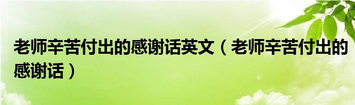 大家好,綜合小編來為大家講解下。老師辛苦付出的感謝話英文,老師辛苦付出的感謝話很多人還不知道,現在讓我們一起來看看吧!