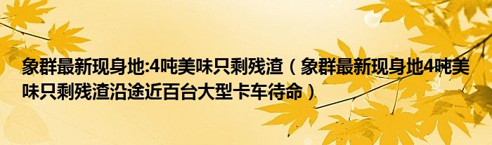 大家好,綜合小編來為大家講解下。象群最新現身地:4噸美味只剩殘渣,象群最新現身地4噸美味只剩殘渣沿途近百臺大型卡車待命很多人還不知道,現在讓我們一起來看看吧!