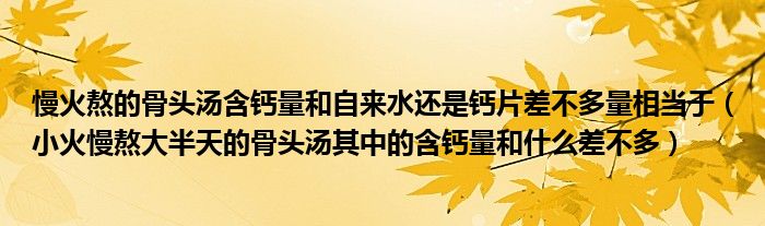 大家好,綜合小編來為大家講解下。慢火熬的骨頭湯含鈣量和自來水還是鈣片差不多量相當于,小火慢熬大半天的骨頭湯其中的含鈣量和什么差不多很多人還不知道,現在讓我們一起來看看吧!