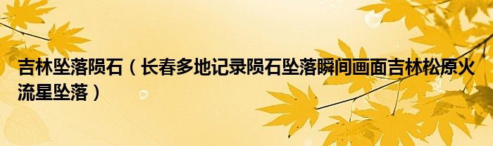 大家好,綜合小編來為大家講解下。吉林墜落隕石,長春多地記錄隕石墜落瞬間畫面吉林松原火流星墜落很多人還不知道,現在讓我們一起來看看吧!