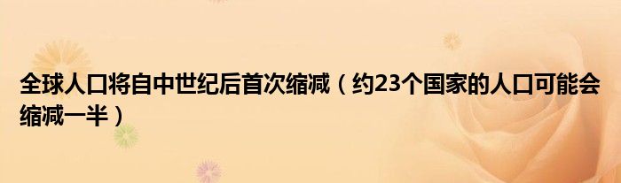 大家好,綜合小編來為大家講解下。全球人口將自中世紀后首次縮減,約23個國家的人口可能會縮減一半很多人還不知道,現在讓我們一起來看看吧!