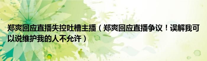 大家好,綜合小編來為大家講解下。鄭爽回應直播失控吐槽主播,鄭爽回應直播爭議!誤解我可以說維護我的人不允許很多人還不知道,現在讓我們一起來看看吧!