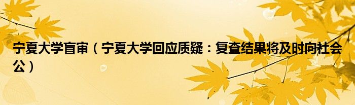 大家好,綜合小編來為大家講解下。寧夏大學盲審,寧夏大學回應質疑:復查結果將及時向社會公很多人還不知道,現在讓我們一起來看看吧!