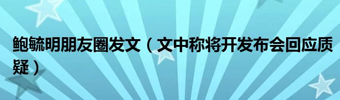 大家好,綜合小編來為大家講解下。鮑毓明朋友圈發(fā)文,文中稱將開發(fā)布會回應質疑很多人還不知道,現(xiàn)在讓我們一起來看看吧!