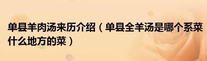 大家好,綜合小編來為大家講解下。單縣羊肉湯來歷介紹,單縣全羊湯是哪個系菜什么地方的菜很多人還不知道,現在讓我們一起來看看吧!