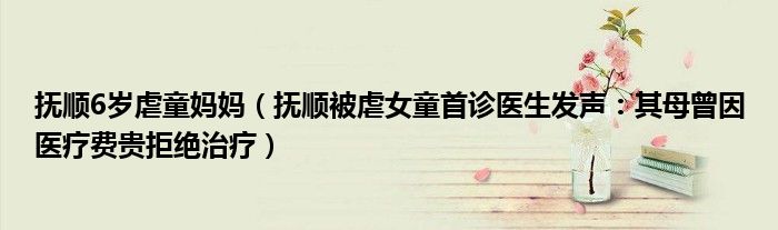 大家好,綜合小編來為大家講解下。撫順6歲虐童媽媽,撫順被虐女童首診醫生發聲:其母曾因醫療費貴拒絕治療很多人還不知道,現在讓我們一起來看看吧!