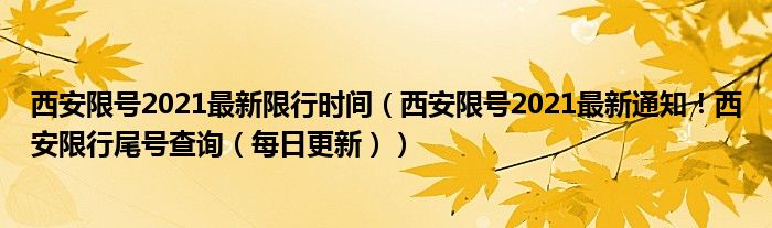 大家好,綜合小編來為大家講解下。西安限號2021最新限行時間,西安限號2021最新通知!西安限行尾號查詢,每日更新很多人還不知道,現在讓我們一起來看看吧!