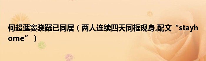 大家好,綜合小編來為大家講解下。何超蓮竇驍疑已同居,兩人連續四天同框現身,配文“stayhome”很多人還不知道,現在讓我們一起來看看吧!