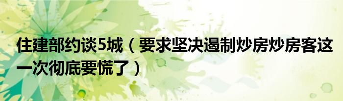 大家好,綜合小編來為大家講解下。住建部約談5城,要求堅決遏制炒房炒房客這一次徹底要慌了很多人還不知道,現(xiàn)在讓我們一起來看看吧!