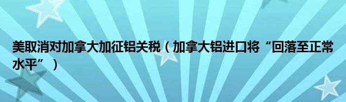 大家好,綜合小編來為大家講解下。美取消對加拿大加征鋁關(guān)稅,加拿大鋁進(jìn)口將“回落至正常水平”很多人還不知道,現(xiàn)在讓我們一起來看看吧!