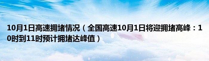 大家好,綜合小編來為大家講解下。10月1日高速擁堵情況,全國高速10月1日將迎擁堵高峰:10時到11時預計擁堵達峰值很多人還不知道,現在讓我們一起來看看吧!