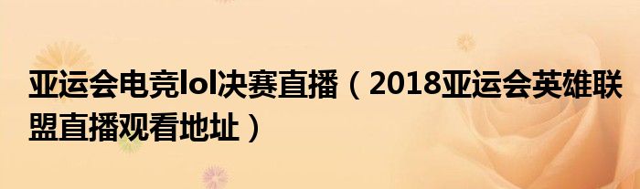 大家好,綜合小編來為大家講解下。亞運會電競lol決賽直播,2018亞運會英雄聯盟直播觀看地址很多人還不知道,現在讓我們一起來看看吧!