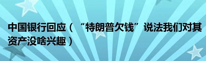 大家好,綜合小編來(lái)為大家講解下。中國(guó)銀行回應(yīng),“特朗普欠錢(qián)”說(shuō)法我們對(duì)其資產(chǎn)沒(méi)啥興趣很多人還不知道,現(xiàn)在讓我們一起來(lái)看看吧!