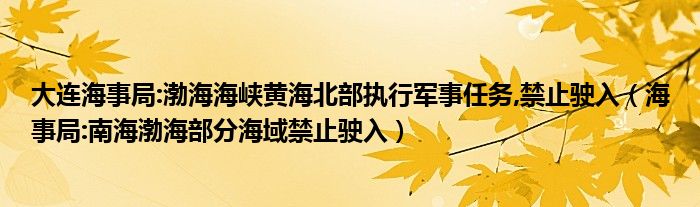 大家好,綜合小編來為大家講解下。大連海事局:渤海海峽黃海北部執行軍事任務,禁止駛入,海事局:南海渤海部分海域禁止駛入很多人還不知道,現在讓我們一起來看看吧!