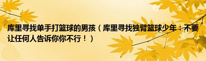 大家好,綜合小編來為大家講解下。庫里尋找單手打籃球的男孩,庫里尋找獨(dú)臂籃球少年:不要讓任何人告訴你你不行!很多人還不知道,現(xiàn)在讓我們一起來看看吧!