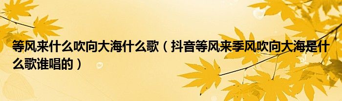 大家好,綜合小編來為大家講解下。等風(fēng)來什么吹向大海什么歌,抖音等風(fēng)來季風(fēng)吹向大海是什么歌誰唱的很多人還不知道,現(xiàn)在讓我們一起來看看吧!