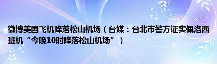 大家好,綜合小編來為大家講解下。微博美國飛機(jī)降落松山機(jī)場,臺媒:臺北市警方證實佩洛西班機(jī)“今晚10時降落松山機(jī)場”很多人還不知道,現(xiàn)在讓我們一起來看看吧!