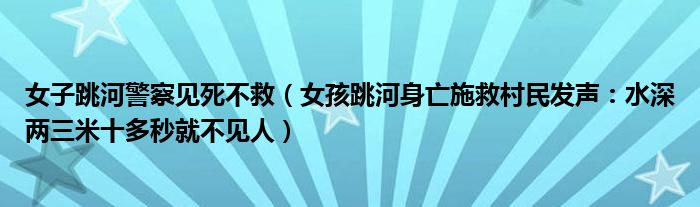 大家好,綜合小編來為大家講解下。女子跳河警察見死不救,女孩跳河身亡施救村民發聲:水深兩三米十多秒就不見人很多人還不知道,現在讓我們一起來看看吧!