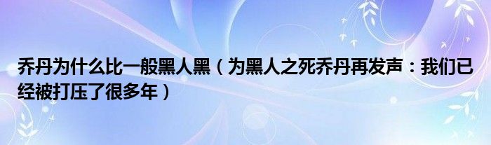 大家好,綜合小編來為大家講解下。喬丹為什么比一般黑人黑,為黑人之死喬丹再發聲:我們已經被打壓了很多年很多人還不知道,現在讓我們一起來看看吧!